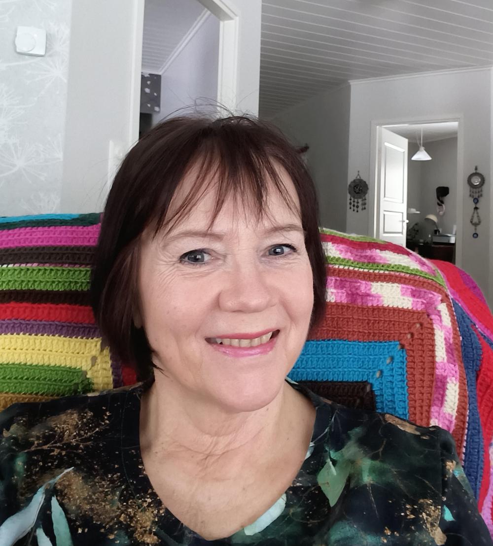 Jäin vuonna 2022 eläkkeelle tilitoimistosta. Erilaiset ”harrastukset” ovat nyt täyttäneet päivät ja viikot mukavasti. Asun mieheni ja äitini kanssa lapsuuden kodissani Alvajärven Kotalahdessa. Meillä on aikuiset lapset, poika ja tyttö. He asuvat täällä Pihtiputaalla perheineen ja näemme heidän kanssaan viikoittain.